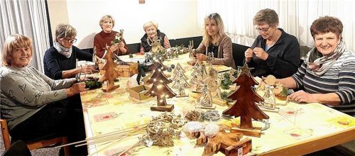 Der Chiemgauer Helferkreis für die Diözese Ternopil-Ukraine ist auf dem Priener Christkindlmarkt präsent. Am dritten und vierten Adventswochenende, 13. bis 15. Dezember und 20. bis 22. Dezember, verkaufen Mitglieder weihnachtliche Dekoration. Unser Foto zeigt die Bastelrunde in Wildenwart rund um Vo