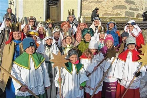 Als Kasper, Melchior und Balthasar brachten auch in Lauterbach die Sternsinger an den Häusern den Segen „C+M+B – Christus segne dieses Haus“ an. Insgesamt waren 24 Kinder in sechs Gruppen unterwegs, um für das Waisenhaus Lipova in Rumänien zu sammeln. So kamen so fast 1950 Euro zusammen. Foto Fischb