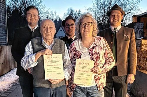 Zur 122. Jahreshauptversammlung des Arbeitervereins Niedermoosen hatte Vorsitzender Thomas Gfüllner geladen. Im Mittelpunkt des Abends standen dieses Jahr die Ehrungen von langjährigen Mitgliedern. Im Bild (von links) Schriftführer Stephan Mayer, Hans-Dieter Regner (25 Jahre Mitgliedschaft), Vorsitz