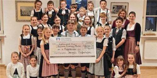 Die Kinder vom Trachtenverein „Immergrün“ Pfaffenhofen haben 2000 Euro vom Erlös der Klöpfelaktion vom vergangenen Dezember kürzlich an die Stiftung ambulantes Kinderhospiz übergeben. Damit wird die Arbeit mit schwerst kranken Kindern und Jugendlichen auch in Rosenheim unterstützt. Pflegeleitung Mag