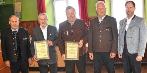 Bei der 191. Jahreshauptversammlung des Veteranen- und Reservistenvereins Riedering-Neukirchen wurden zwei neue Ehrenmitglieder ernannt. Vorsitzender Alfons Schuster würdigte die jahrelang ehrenamtliche Arbeit von Andreas Hefter und Sebastian Niedermaier in der Vorstandschaft mit der Verleihung der