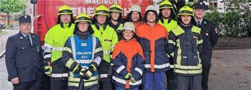 Eine gemischte Gruppe der Feuerwehr Höslwang hat jetzt die Leistungsprüfung „Gruppe im Löscheinsatz“ erfolgreich bestanden. Gemischt deshalb, weil Mitglieder der Jugendfeuerwehr mit den Aktiven über 18 Jahren gemeinsam zur Abnahme durch die Kreisbrandinspektion antraten. Knoten und Stiche sowie die