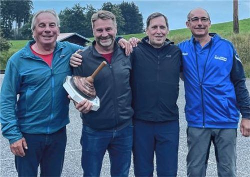 Bei der Dorfmeisterschaft der Eggstätter Stockschützen in Wöhr kämpften neun Teams um den Wanderpokal. Das Team mit Klaus Huber, Hans Hundhammer, Markus Stitzl und Stefan Wolf (von links) sicherte sich souverän und ohne Punktverlust den Wanderpokal und ist damit der neue Dorfmeister 2025. Den zweite