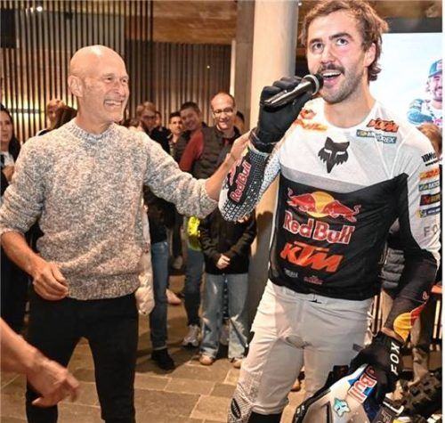 Hard-Enduro-Weltmeister Manuel Lettenbichler (rechts) im Gespräch mit Werkhaus-Gründer Willi Bruckbauer.