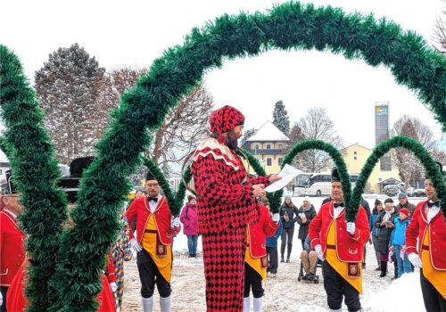 Alle sieben Jahre tanzen die Kolbermoorer Schäffler in der Kiefer. So auch heuer wieder auf Einladung der Sparkasse Rosenheim-Bad Aibling. Am späten Vormittag traf der Tross, musikalisch mit Trommeln und Pfeifen von der Blaskapelle „Am Wasen“ angeführt, ein, und unter dem Beifall der begeisterten Zu