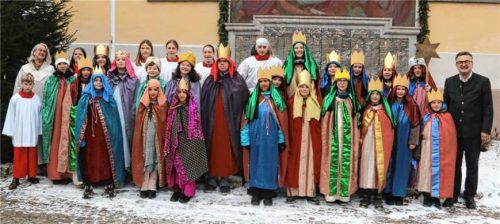 Bei eiskaltem Wetter machte sich eine große Schar Ministranten als Sternsinger auf den Weg durch die Gemeinde Neubeuern, um den Segensspruch zu verkünden. Sie sammelten 8.757 Euro an Spenden. Gemeindereferentin Manuela Bauer (links) und Pfarrer Christoph Rudolph (rechts) bedankten sich herzlich für