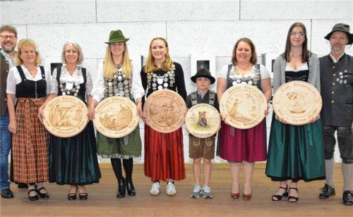 Königschießen der vier Eggstätter Schützenvereine mit Rekordbeteiligung von 153 Startern in sechs Disziplinen. In fünf davon errangen die Damen erste Plätze. Nur bei den Lichtgewehrkindern holte sich Moritz Bernritter erneut die Königswürde. Im Bild von links: Bürgermeister Christoph Kraus, Zweite S