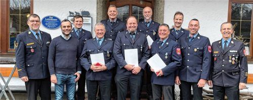 Im Rahmen der Jahresversammlung der Feuerwehr Hirnsberg wurden verdiente Mitglieder für ihren langjährigen Feuerwehrdienst geehrt. In Anwesenheit von Bad Endorfs Bürgermeister Alois Loferer überreichten Kreisbrandrat Richard Schrank und Kreisbrandinspektor Franz Hochhäuser den Geehrten als Dank Urku