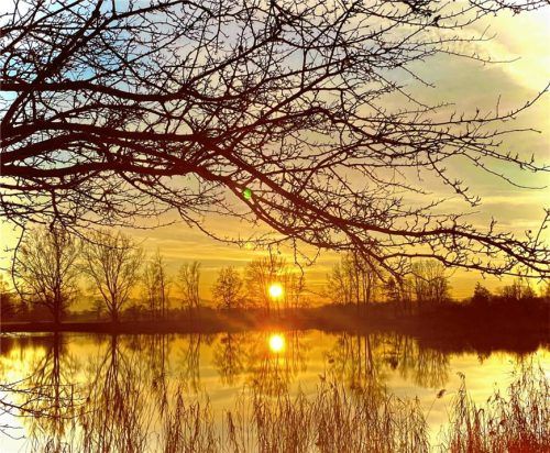 Nach einem langen Tag belohnt einen die Natur mit dieser zauberhaft gespiegelten Kulisse beim abendlichen Spaziergang am Erlensee. „Man glaubt, es funkeln zwei Augen …“, meint