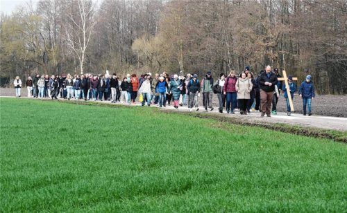 Viele Gläubige machten mit bei der Wallfahrt des Pfarrverbandes Selige Irmengard nach Altötting. Mit drei Bussen ging es nach Heiligenstatt/Tüßling und von dort weiter zu Fuß entlang des fünf Kilometer langen Kreuzwegs nach Altötting. Mit dabei waren die Firmlinge mit ihren Paten sowie Erstkommunion