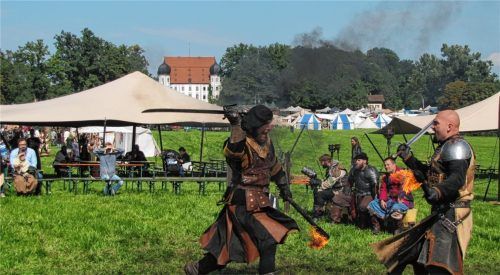 Auf zwei Kampfplätzen erlebten die Zuschauer am Wochenende Ritterturniere, Kämpfe und eine Nachtfeuershow samt Feuerspektakel. 3000 Besucher tauchten ins Mittelalter ein und erkundeten bei den Ritterspielen vor Schloss Maxlrain Heerlager, Marktstände und Buden. Auf zwei Musikbühnen erklangen Klänge
