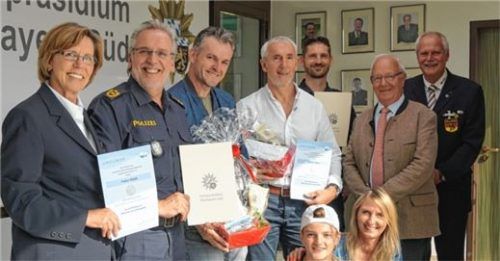 Zwei Rosenheimer, die am 28. Mai dieses Jahres einem zweijährigen Kind und seiner Oma, die in Rosenheim in den Mangfallkanal gestürzt waren, das Leben gerettet haben (wir berichteten), wurden jetzt vom Polizeipräsidium Oberb