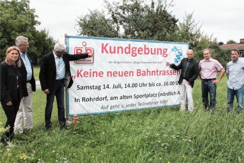 Eine Menschenkette, die sich am Samstag, 14. Juli, in Rohrdorf formiert, soll ein sichtbares Zeichen für den Widerstand in der Bevölkerung gegen die Schaffung neuer Bahntrassen für den Nordzulauf zum Brennerbasistunnel sein. Die Demonstration, auf die große Banner im Bereich Rohrdorf hinweisen, begi