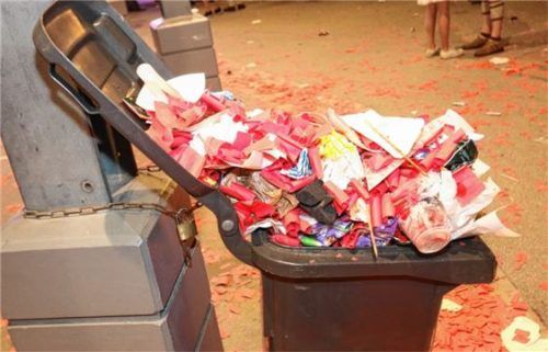 Randvoll sind am Ende eines langen Herbstfest-Tages nicht nur einige Wiesn-Gäste, sondern vor allem die Mülltonnen – so wie hier am Glückshafen. Foto stuffer