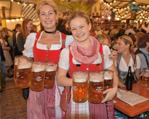 Auch im größten Trubel hat sie immer das Wohl der Zeltgäste mit charmanter Freundlichkeit und einem Lächeln im Gesicht im Blick: Die neue „Nr.1“ der Flötzinger-Bedienungen, Christine Dräxl aus Nußdorf (links), ist kürzlich für 20 Jahre vom „Bräu“ geehrt worden, davon war sie 15 Jahre in der Brauerei