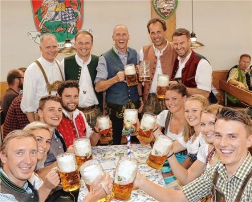 „Gold trifft Gold“ hieß es beim Wiesnausflug der Bundespolizei-Sportschule Bad Endorf in die Auerbräu-Festhalle. Spitzensportler und Goldmedaillengewinner bei Olympischen Spielen und Weltmeisterschaften stoßen hier mit dem 2018 erneut mit der DLG-Medaille in Gold ausgezeichneten Festmärzen an. Stehe