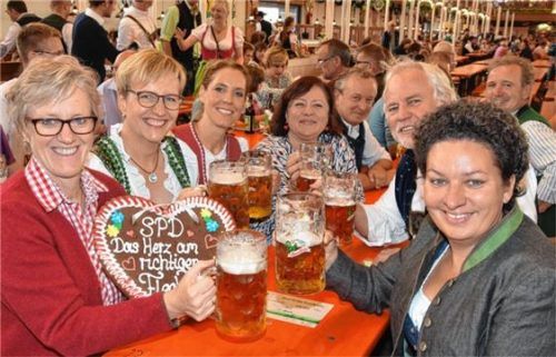 Dieses große Lebkuchenherz sehen die Rosenheimer Sozialdemokraten quasi als Parteiprogramm. „Wir haben das Herz am richtigen Fleck und halten die Gesellschaft zusammen“, war man sich beim traditionellen SPD-Treffen am Maurermontag in der Auerbräu-Festhalle einig. Von links: die Bezirksrätin und Vors