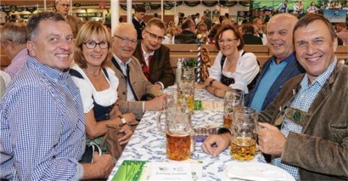 Die Autoren, Lektoren und Mitarbeiter des Rosenheimer Verlagshausesmögen es eigentlich etwas ruhiger, aber auch im Wiesnlärm hatten sie sichtlich beste Laune. Von links: Helmut und Ulla Klarner, Anton Heindl, Walter und Gabi Leicht, Wolfgang Finkel und Verleger Klaus G. Förg. Foto re