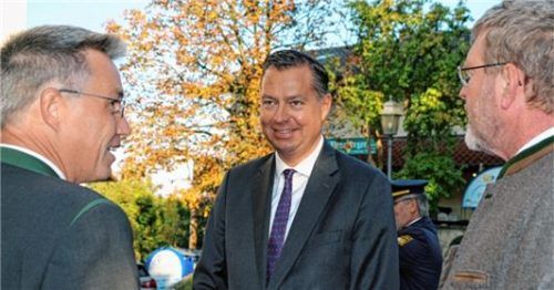 Rückgang des Respekts vor der Polizei, Innere Sicherheit und Asylpolitik – das waren drei Kernthemen bei der Herbstwallfahrt des Katholischen Männervereins Tuntenhausen. Hauptredner war Stephan Mayer (Mitte), Parlamentarischer Staatssekretär im Bundesinnenministerium, hier im Gespräch mit Umweltmini