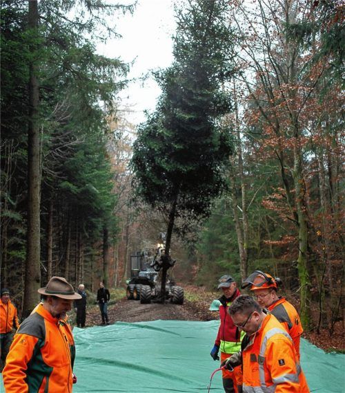 Zugegeben, auf den ersten Blick sah der Baum doch etwas kahl aus – letztlich zählen aber nur die oberen zwölf Meter. Und die werden Ansprüchen der Bayerischen Vertretung in Brüssel offenbar gerecht. Gestern wurde die Weißtanne im Revier Straßmaier im Großhaager Forst gefällt, am Samstag soll der Chr