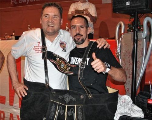 Richtig gut gelaunt zeigten sich die Profis des FC Bayern München bei ihren Fanclub-Besuchen in der Region. Flügelspieler Franck Ribery war bei den „13 Höslwangern“ zu Gast, Trainer Niko Kovac zog es nach Inzell zum Fanclub „Da rode Stean“. Dort musste er zunächst viele Fragen beantworten, ehe er si