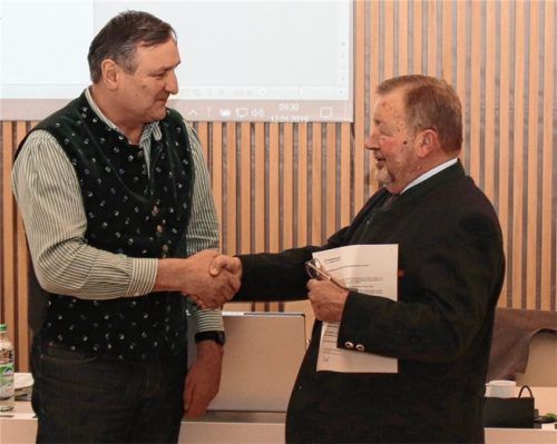 Franz Ametsbichler (links) von der CSU ist ab sofort neuer Kreisrat. Das wurde bei der Klausurtagung des Kreistages am Samstag im großen Sitzungssaal am Landratsamt in Rosenheim einstimmig beschlossen. Er wird das Ehrenamt bis zum Ende der Legislaturperiode 2020 ausüben. Nach seiner Wahl wurde er vo