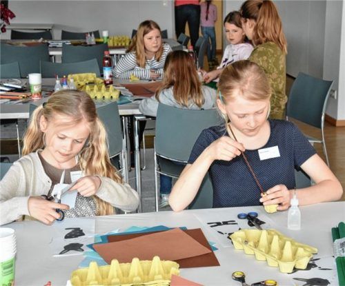 20 Tage noch bis Ostern. Die rund 60 Buben und Mädchen, die am großen Osterbasteln der OVB-Heimatzeitungen teilgenommen haben, sind schon bestens gerüstet. Mit Unterstützung von Mitarbeitern des Rosenheimer Vereins „Kind und Werk“ haben sie aus Eierkartons und buntem Papier niedliche Hasen-Anhänger,