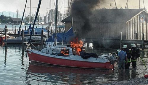 In Ufernähe der Wasserwachtstation Seebruck brannte ein Segelboot völlig aus. Badegäste bemerkten den Brand, zogen das Boot vom Wasserwachtsgebäude weg und brachten es in Ufernähe. Die Feuerwehren Seebruck, Truchtlaching und Chieming erstickten den Brand mit Schaum und verhinderten zugleich, dass si