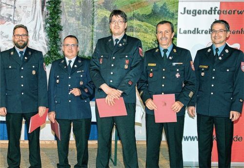 Ehrungen standen in Prien bei der Versammlung der Kommandanten vom Kreisfeuerwehrverband Rosenheim im Fokus (wir berichteten). Mit zahlreichen Auszeichnungen würdigte Kreisbrandrat Richard Schrank die aus dem Dienst ausscheidenden Kommandanten sowie verdiente Funktionäre. Diese hatten sich in divers