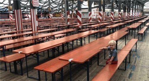 „Oana is scho do“ – das schrieb uns Carin Ehrenleitner am Freitagabend. Johannes Maximilian Zeyss, 20 Monate, aus Riedering, genießt hier die Ruhe vor dem Sturm und macht es sich einen Tag vorm großen Andrang im Flötzinger-Festzelt „gmiatlich“.Foto ehrenleitner