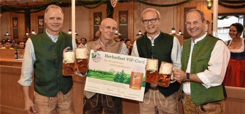 Auch heuer floss in der Inntalhalle das Festbier schon einen Tag vorm Wiesnstart. Eingeladen waren die vielen fleißigen „Herbstfestaufbau-Helfer“ sowie – als Premiere – alle Auerbräu-Mitarbeiter. Festwirt Andi Schmidt und sein Team versorgten die rund 350 Gäste bestens – unter anderem mit dem preisg