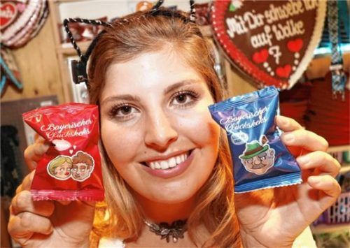 Glückskekse kennt der Wiesnigel Ignaz eigentlich nur aus dem chinesischen Restaurant. Jetzt entdeckte er sie auch auf der Wiesn im Auerbräu. Die Bayerischen Glückskekse, hier präsentiert von Jennifer Gröning, gibt es in zwei Varianten. Neben netten Sprüchen findet man in den „Tüterln“ auch Derbheite