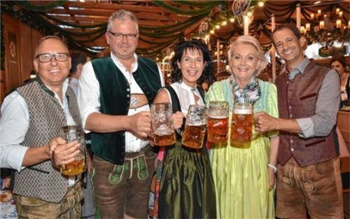 Ein letztes gemütliches Prost! Ob es in Rosenheim im kommenden Kommunalwahlkampf so harmonisch zugeht wie hier, ist zu bezweifeln. Das Bild zeigt von links die Rosenheimer OB-Kandidaten Robert Metzger (SPD), Franz Opperer (Grüne), Christine Degenhart (Freie Wähler) und Andreas März (CSU) mit der sch