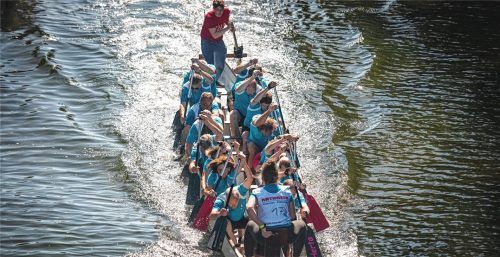 In seiner elften Auflage hat das Drachenbootrennen auf der Mangfall in Rosenheim für viel Gaudi und große Spannung gesorgt. Den Wettbewerb am Samstag entschieden die „Stoaling-Alm Piraten“ für sich. Die Schüler starteten in einer eigenen Konkurrenz. Auch das Boot mit der originellsten Aufmachung – B