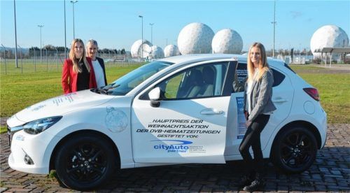 Wenn das keine runde Sache ist: Der Mazda2, den es bei der Aktion „OVB-Leser zeigen Herz“ zu gewinnen gibt, macht hier vor den ehemaligen Lauschkugeln der Nachrichtendienste in Bad Aibling Station. Der Kleinwagen im Wert von 16000 Euro wurde von City-Autopartner Kolbermoor (Auto-Eder-Gruppe) für die