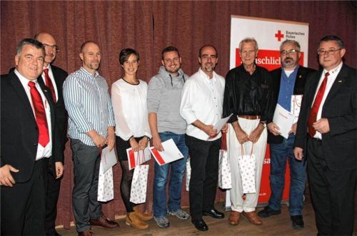 Der Kreisgeschäftsführer des BRK-Kreisverbands Rosenheim, Martin Schmidt, bedankte sich jetzt bei langjährigen Mitarbeitern, die ein rundes Dienstjubiläum feiern konnten. „Ihr seid die Stützen unseres Kreisverbandes“, sagte Schmidt. Zehn Jahre dabei sind Mario Kögl, Joachim Jell, Lukas Heller, Ralf