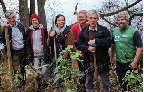 Mit einer Baumpflanzaktion gratulierten die Mitglieder der Initiative „BürgerInnen für den Schutz der Eggstätt-Hemhofer Seenplatte“ zum 80-jährigen Bestehen des ältesten Naturschutzgebiets Bayerns – der Eggstätt-Hemhofer Seenplatte. Mit Spaten und Gießkanne wurden von (von links) Josef Söldner, Barb