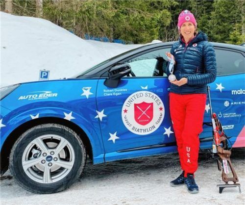 Auto Eder Kolbermoor hat dem US-Biathlon-Damen-Team fünf Fahrzeuge für die Weltmeisterschaft in Antholz zur Verfügung gestellt. Biathletin Susan Dunklee (Foto) durfte beispielsweise den neuen Ford Puma fahren. Ein Fahrzeug, das die Dame wohl beflügelt hat. Im Sprint-Wettbewerb gelang es der 34 Jahre