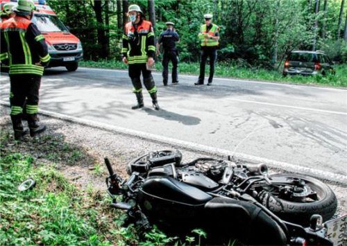 Schwere Verletzungen im Beckenbereich zog sich ein 49-jähriger Motorradfahrer aus Brunnthal bei einem Verkehrsunfall am Samstag zu. Wie die Polizei berichtet, war ein 74-jähriger Autofahrer aus Prutting auf der Staatsstraße 2359 zwischen Rosenheim und Vogtareuth unterwegs. In einem Waldstück auf Höh