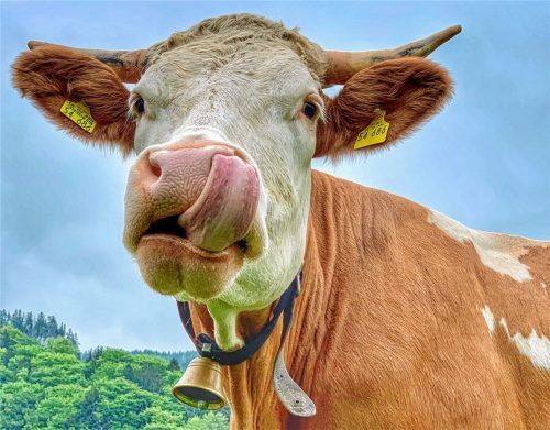 Doch was tun, wenn die Nase juckt? Wie gut haben es da die Kühe in der Region, die mit ihrer langen Zunge einfach mal den Juckreiz an der Nase bekämpfen können.