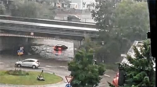 Prien – „Oh Gott, da fährt jetzt aa no oana rei“: Die Frau aus Rimsting kann selbst kaum fassen, was sie da gerade in Prien mit ihrem Handy vom Fenster aus filmt. In der völlig überfluteten Seestraßenunterführung steht das Wasser bis zu einem Meter hoch. Dennoch fährt ein Auto hinein – und säuft ab.
