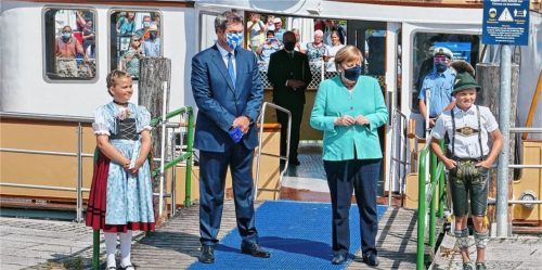 Prien/Herrenchiemsee – Ein aufregender Morgen war es für Luzia Huber (12) vom Trachtenverein Daxenwinkler Atzing. Gemeinsam mit Lukas Huber (11) begrüßte sie Angela Merkel und Markus Söder in Prien. Wie es lief? „Sehr nett war sie“, sagt Luzia über die Kanzlerin.