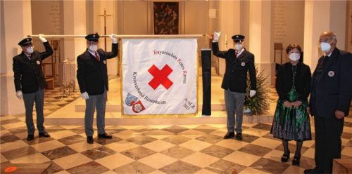 Der BRK-Kreisverband Rosenheim hat jetzt die vom scheidenden Vorsitzenden Karl-Heinrich Zeuner und seiner Ehefrau Anneliese gestiftete Fahne im kleinsten Kreis in der St.-Nikolaus-Kirche in Rosenheim geweiht. Mit knapp 30 Gästen konnte die Fahne noch in der Amtszeit des aktuellen Vorsitzenden geweih