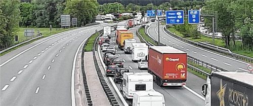 Stau auf der A93 wegen Blockabfertigung, Gesundheits-Kontrollen und Reiseverkehr am Pfingstwochenende