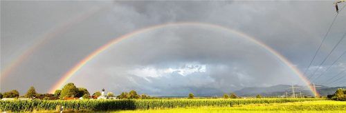 Der Raum Rosenheim ist beim Unwetter am Sonntag erneut glimpflich davongekommen. Zudem durften sich die Bürger, nachdem sich der Regen verzogen hatte und die Sonne wieder durch Wolkenlücken spitzte, über ein besonderes Naturschauspiel freuen: Einen herrlichen Regenbogen, den OVB-Leserreporterin Kari