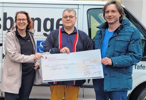 Über eine Unterstützung von 10000 Euro konnte sich Claudia Seethaler vom Roten Kreuz, Betreiber der Raublinger Tafel, freuen. Jedes Jahr spenden Michael Dietl (Mitte) und Andreas Oppacher an eine soziale Einrichtung. Nun fiel die Wahl auf die Raublinger Tafel. „In einer Gesellschaft, die sich durch