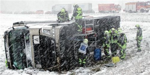 Auf schneeglatter Fahrbahn hat am Freitag gegen 15.15 Uhr ein 38-jähriger Bosnier auf der A8 bei Bernau die Kontrolle über seinen Lkw verloren. Das Gefährt geriet ins Schlingern und kippte um. Der Fahrer wurde nach Angaben der Polizei dabei leicht verletzt. Den Sachschaden am Lkw bezifferte ein Poli