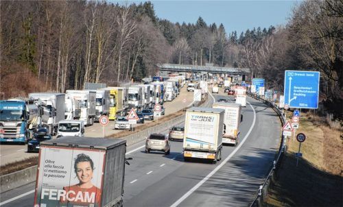 Die Lkw-Blockabfertigung bei Kufstein durch die Tiroler Behörden hat auch am gestrigen Montag zu Behinderungen im Raum Rosenheim geführt. Gegen 11 Uhr hatte der Rückstau auf der rechten Fahrspur nach Angaben der Verkehrspolizei Rosenheim seine Höchstlänge erreicht. Die Lkw-Blechlawine reichte zu die