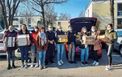 Viele Jugendliche möchten angesichts der erschreckenden Bilder aus der Ukraine die notleidenden Menschen tatkräftig unterstützen. So auch die Schüler der Romed-Berufsfachschule für Pflege in Wasserburg. Ihre Lehrerin Eva Tauschek (Vierte von links) machte sie und das Lehrerkollegium auf die Spendena