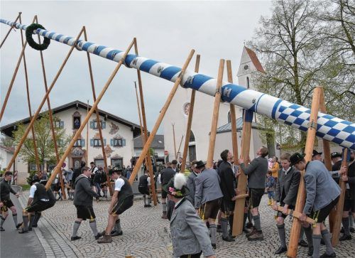 Sie mussten während der Corona-Pandemie auf so viele Feste verzichten – da konnte das durchwachsene Wetter die Vereine nicht aus der Bahn werfen: In vielen Dörfer der Region wurden am Wochenende – wie hier in Hochstätt bei Schechen – die neuen, weiß-blau bemalten Maibäume als Zeichen bayerischer Leb